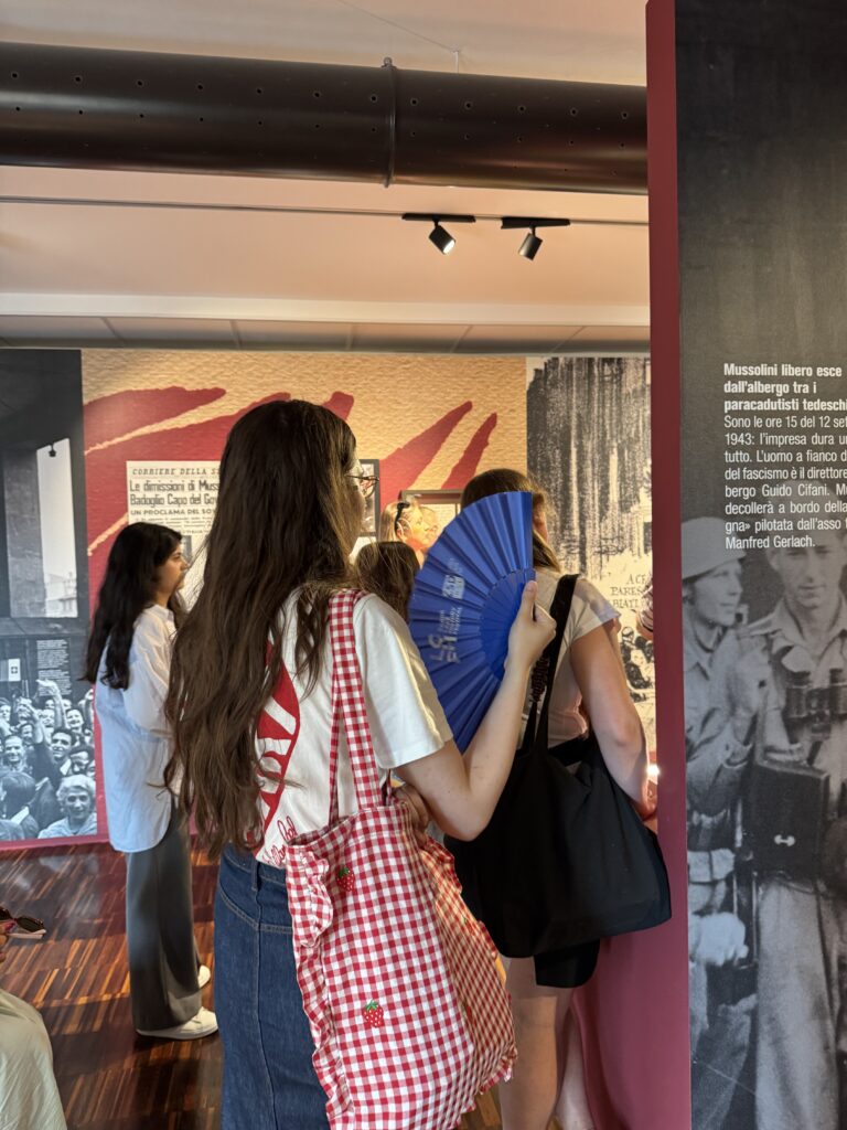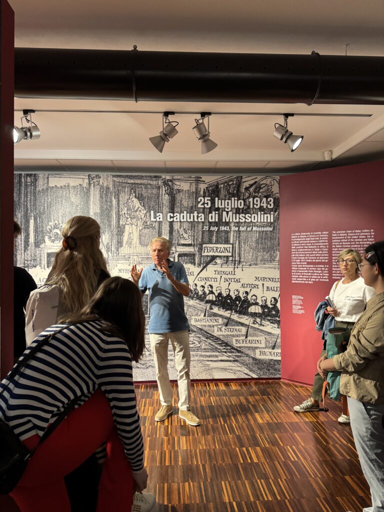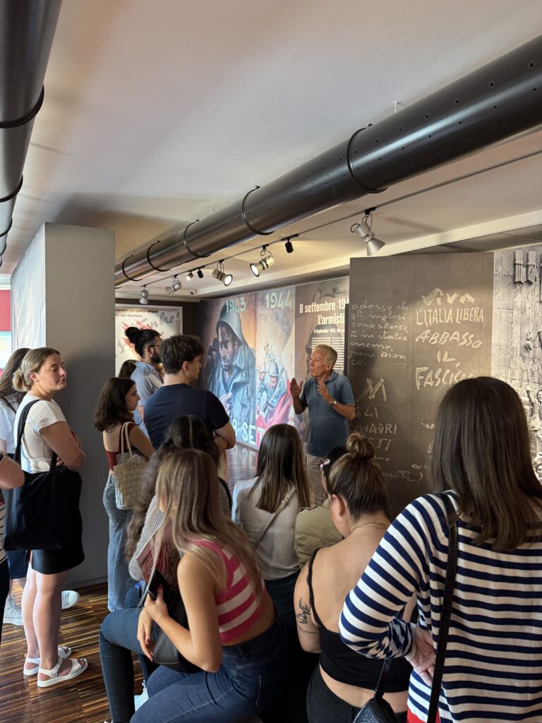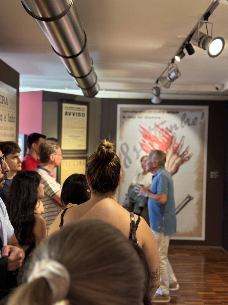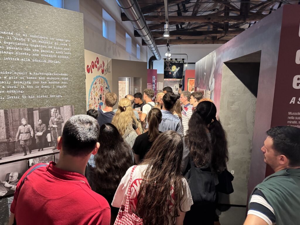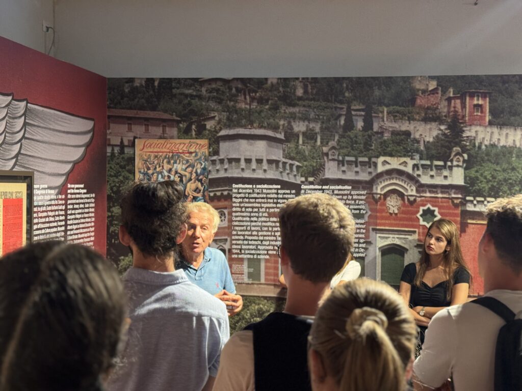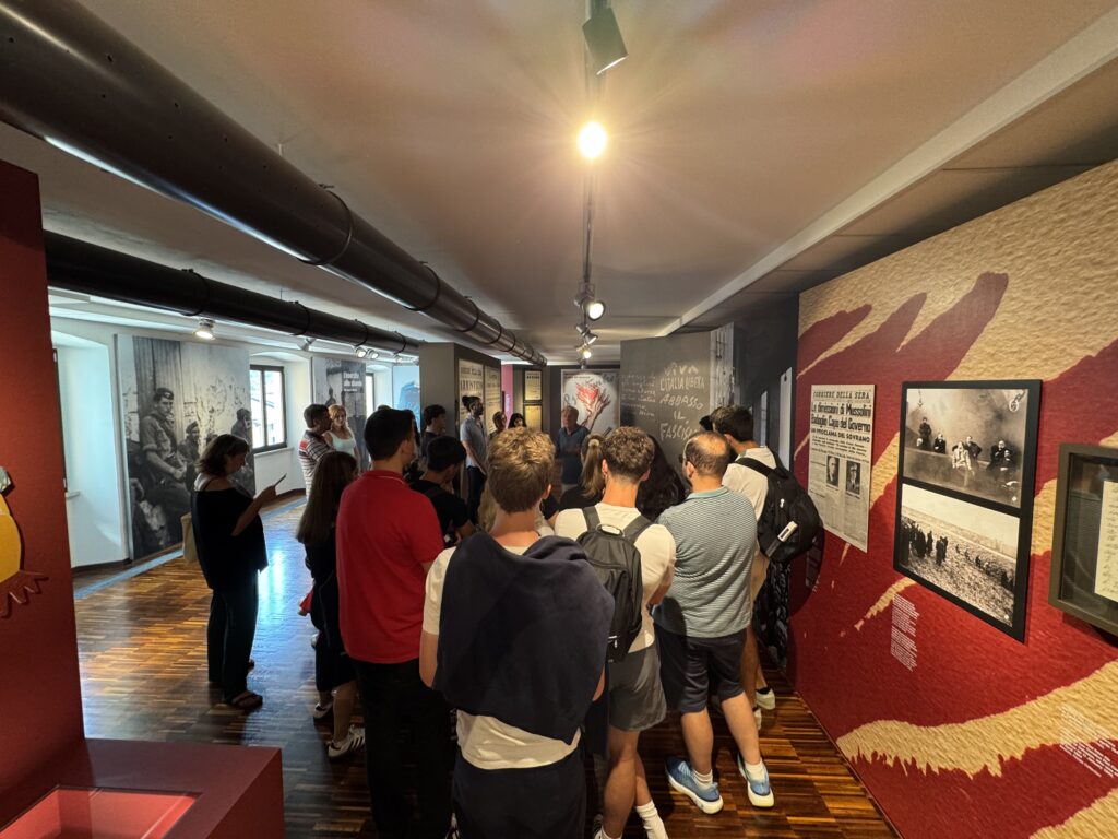 23 studenti di 18 nazionalità diverse del Centro linguistico Slam dell’Università degli Studi di Milano, centro diretto da Michela Argenti e avente sede estiva a Villa Feltrinelli a Gargnano, sono stati accompagnati da Stefania Scarpetta (Slam) e dai docenti Anna Zaffaroni, Andrea Groppaldi e Emiliano Rossi in visita guidata alla nostra sezione museale sulla Repubblica sociale italiana del MuSa a Salò. Visita guidata – coordinata dagli storici Roberto Chiarini e Elena Pala – e accessi gratuiti grazie al nostro progetto “Public Engagement in History”.
