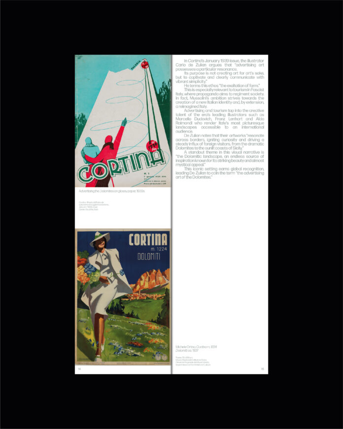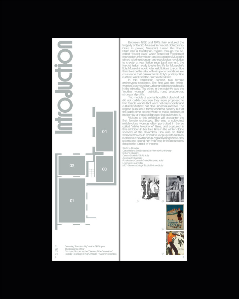 Vi mettiamo oggi a disposizione la pubblicazione di sala della mostra “Dolomites Skirama. Lo stile della donna italiana in montagna 1922-1945”, pubblicazione ideata nella sua identità visiva e grafica da StraStudio, che ringraziamo, ed edita da Intese Grafiche di Montichiari.