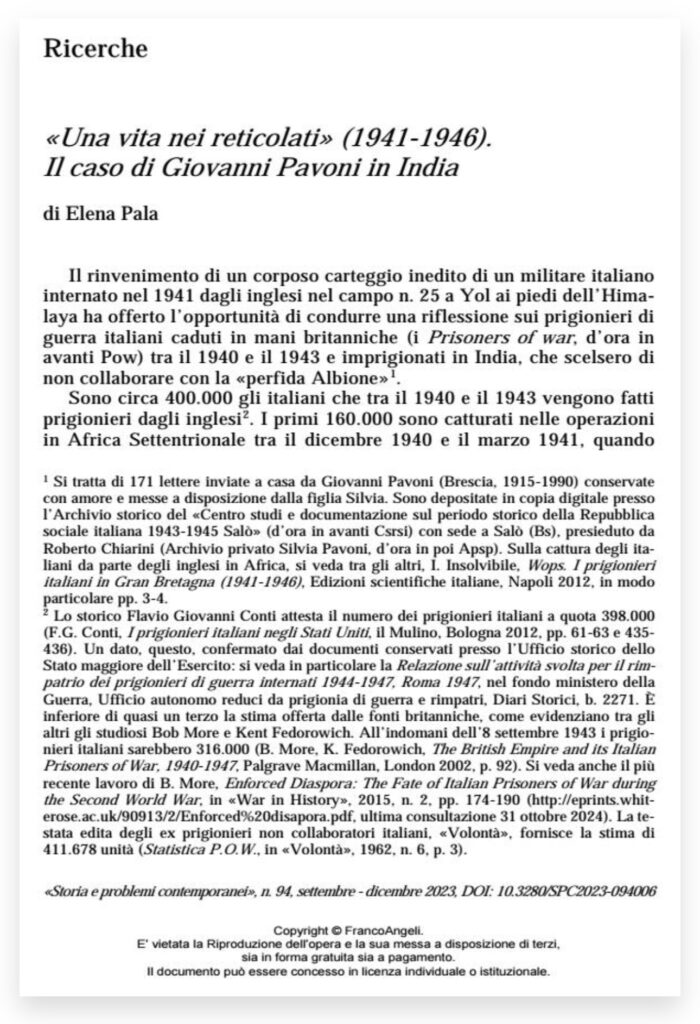 Il fondo archivistico Giovanni Pavoni, prigioniero non collaboratore