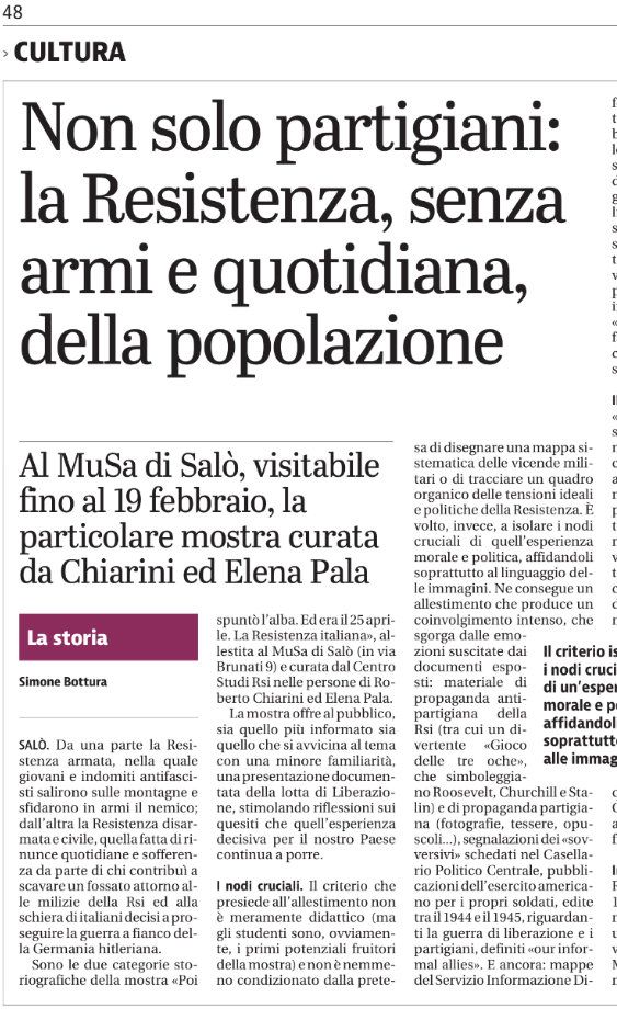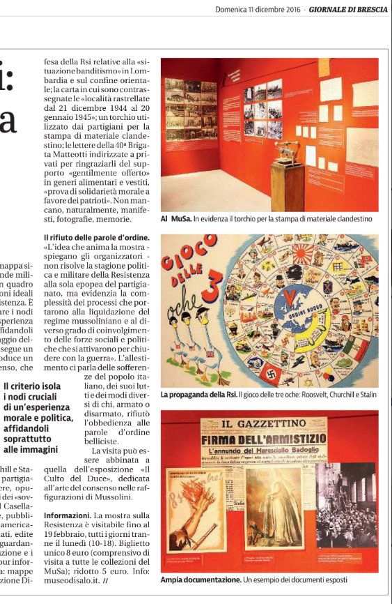 Dal “Corriere della Sera” del 18 dicembre 2016: https://lanostrastoria.corriere.it/2016/12/18/la-resistenza-vista-dai-fascisti-e-dalla-gente-comune-una-mostra-a-salo/