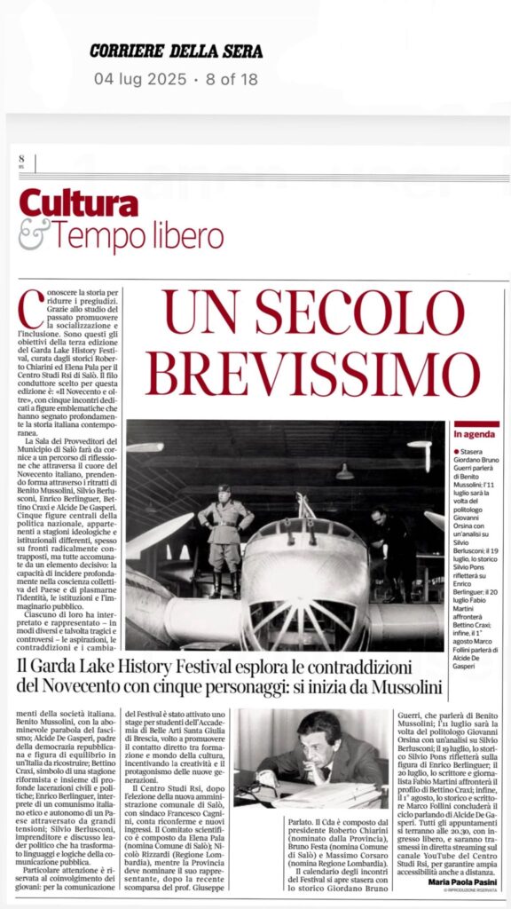 HomeConvegniSul Corriere della Sera,... Luglio 4, 2025 Sul Corriere della Sera, si parla del nostro Festival By Redazione CentroRsi FacebookTwitterPinterestWhatsApp - Ente partecipato da - Più popolari L’inagurazione della nostra mostra alla NYU L’allestimento della nostra mostra “Dolomites Skirama. Lo stile della donna italiana in montagna 1922-1945” alla NYU “La Voce del Popolo” parla della nostra prossima mostra alla NYU! Il “Giornale di Brescia” e la nostra mostra alla NYU!