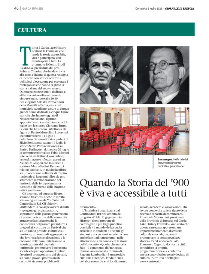 HomeConvegniSull'inserto "Garda" del Giornale... Luglio 6, 2025 Sull’inserto “Garda” del Giornale di Brescia By Redazione CentroRsi FacebookTwitterPinterestWhatsApp - Ente partecipato da - Più popolari L’inagurazione della nostra mostra alla NYU L’allestimento della nostra mostra “Dolomites Skirama. Lo stile della donna italiana in montagna 1922-1945” alla NYU “La Voce del Popolo” parla della nostra prossima mostra alla NYU! Il “Giornale di Brescia” e la nostra mostra alla NYU!